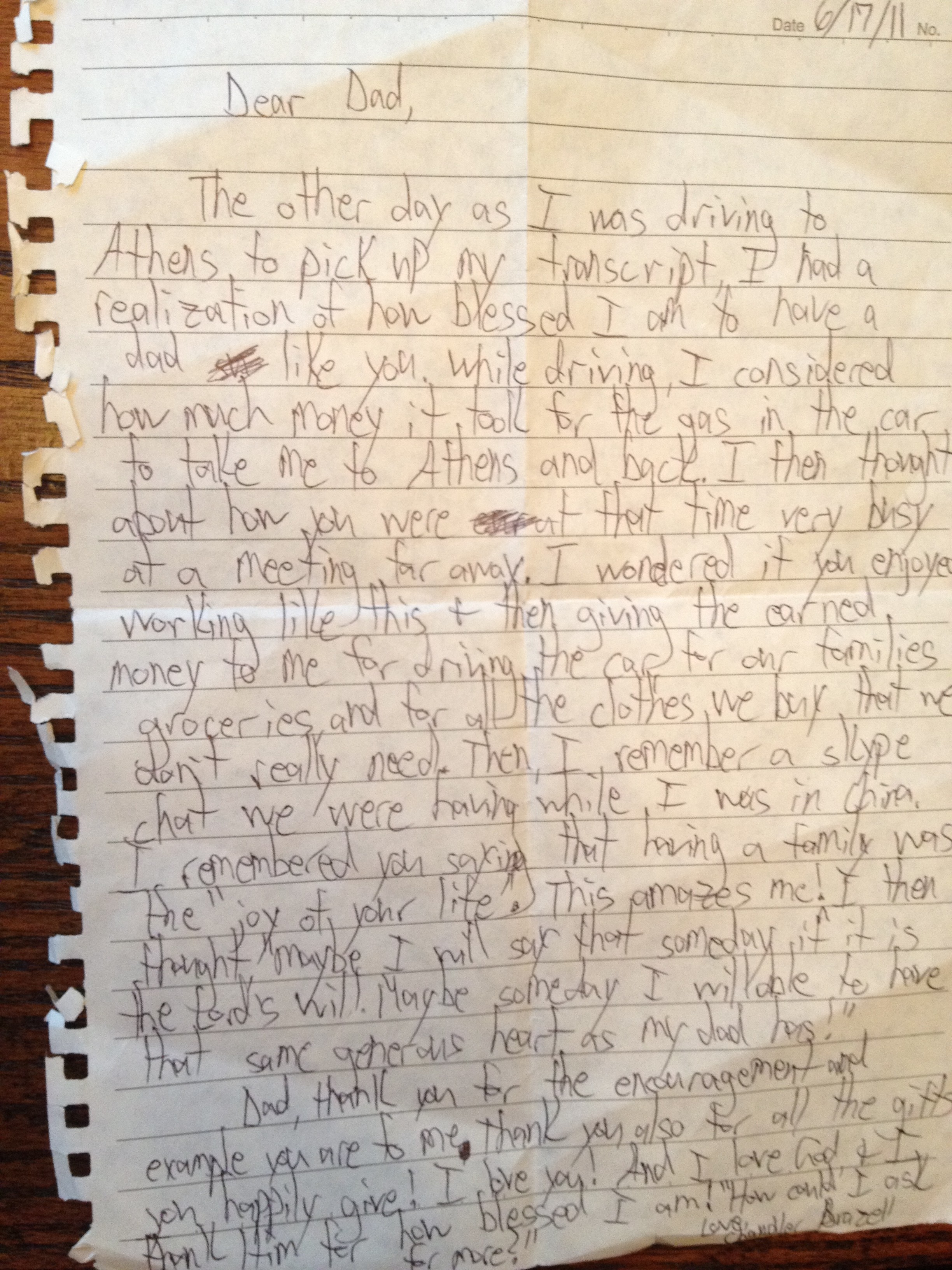 PS. Notice at the bottom of the letter he writes, “I love you..and I love God’. There is nothing that gives me more joy than to know that my son loves me and that he loves his God. And there is nothing that matters more NOW and into eternity than that he loves God! I love you too, son!